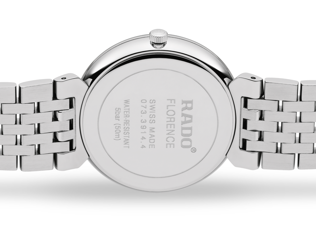 Rado瑞士雷达表Rado瑞士雷达表Florence佛罗伦萨系列充满和谐感的设计构思,令人联想起腕表命名城市的标志性典雅圆顶和钟塔。凭借高品质石英机芯、创新Rado瑞士雷达表金属涂层蓝宝石玻璃表镜和钻石的永恒魅力,这是一款经得起时间考验的经典时计。镀铑指针优雅滑行于4颗双翻钻的上方,四颗钻石分别位于3点、6点、9点和12点钟位置。全新Rado瑞士雷达表Florence Classic佛罗伦萨经典系列,携著名的Jubilé标志强势回归,向世人展示着其闪亮存在。