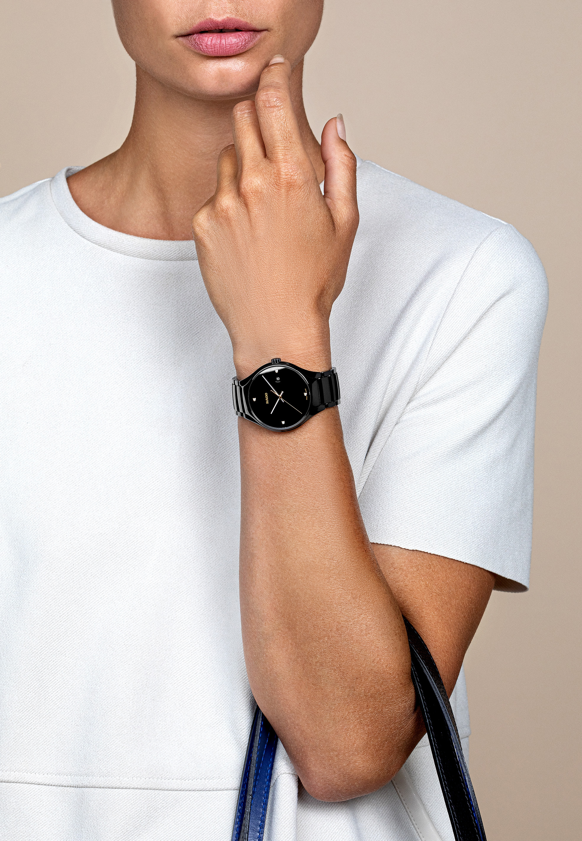 Rado瑞士雷达表True真系列镂空腕表采用抛光处理高科技陶瓷,全新升级的设计现代简约,出色保留了Rado瑞士雷达表别具一格的特色,风格卓著,耀眼钻石更为腕表增添魅力。这款腕表不仅拥有持久的迷人光芒,且舒适轻盈。这正是Rado瑞士雷达表True真系列的至臻魅力。