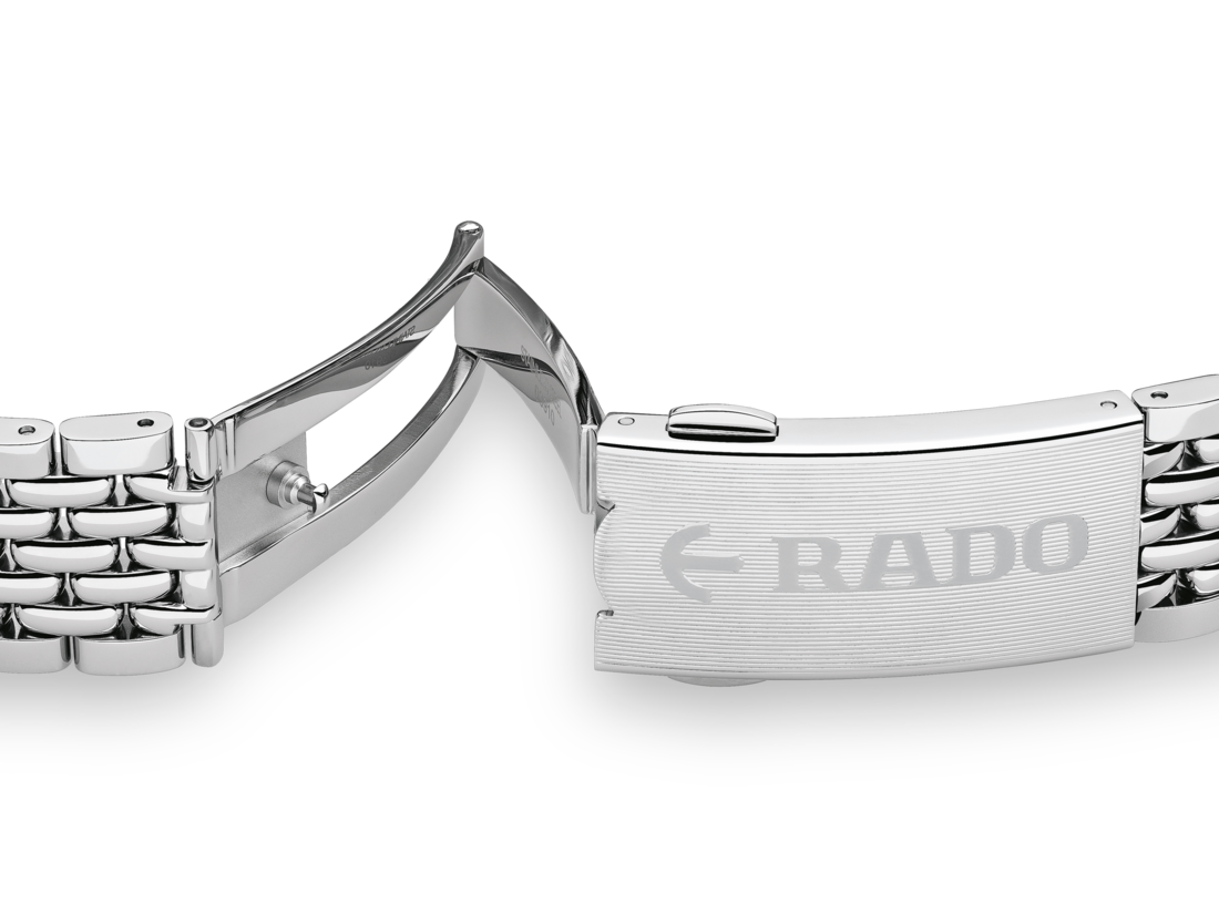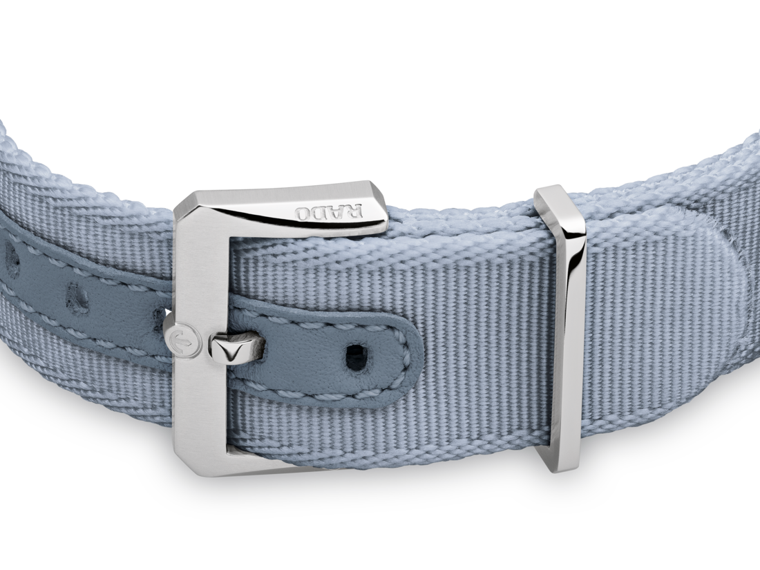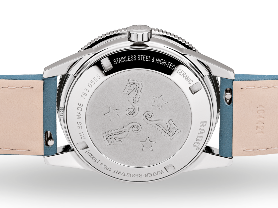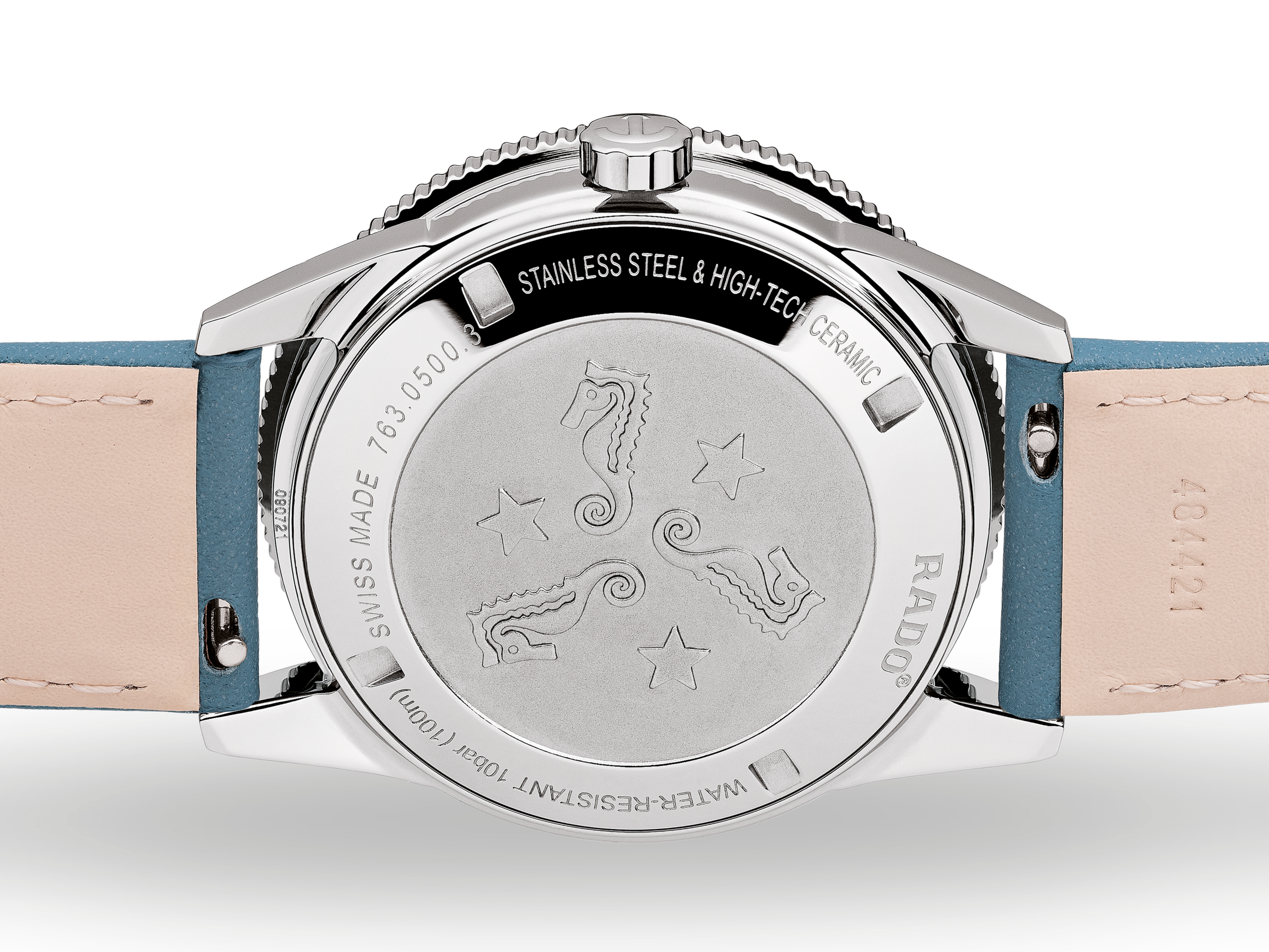 全新Rado瑞士雷达表库克船长自动机械腕表是对标志性Rado瑞士雷达表时计的当代诠释。雪白色表盘上镶有八颗冰蓝色蓝宝石时标,表盘周围为白色高科技陶瓷镶嵌表圈。腕表配备三款表带——米粒状精钢表链、浅蓝色Nato表带或带有蓝色缝线的蓝色皮革表带——借助Rado瑞士雷达表表带快速更换(Easy Clip)系统,可以轻松快速地更换表带。