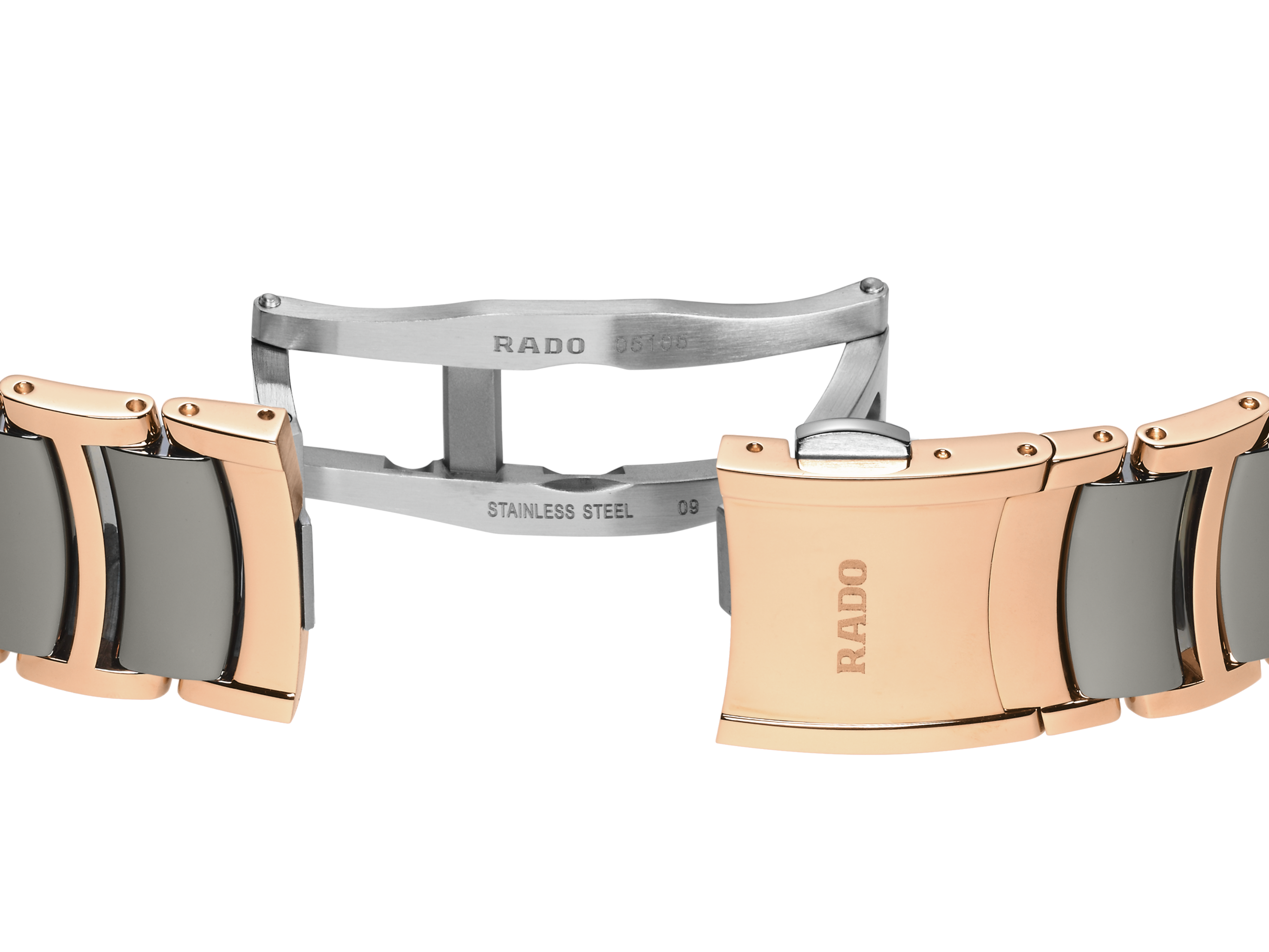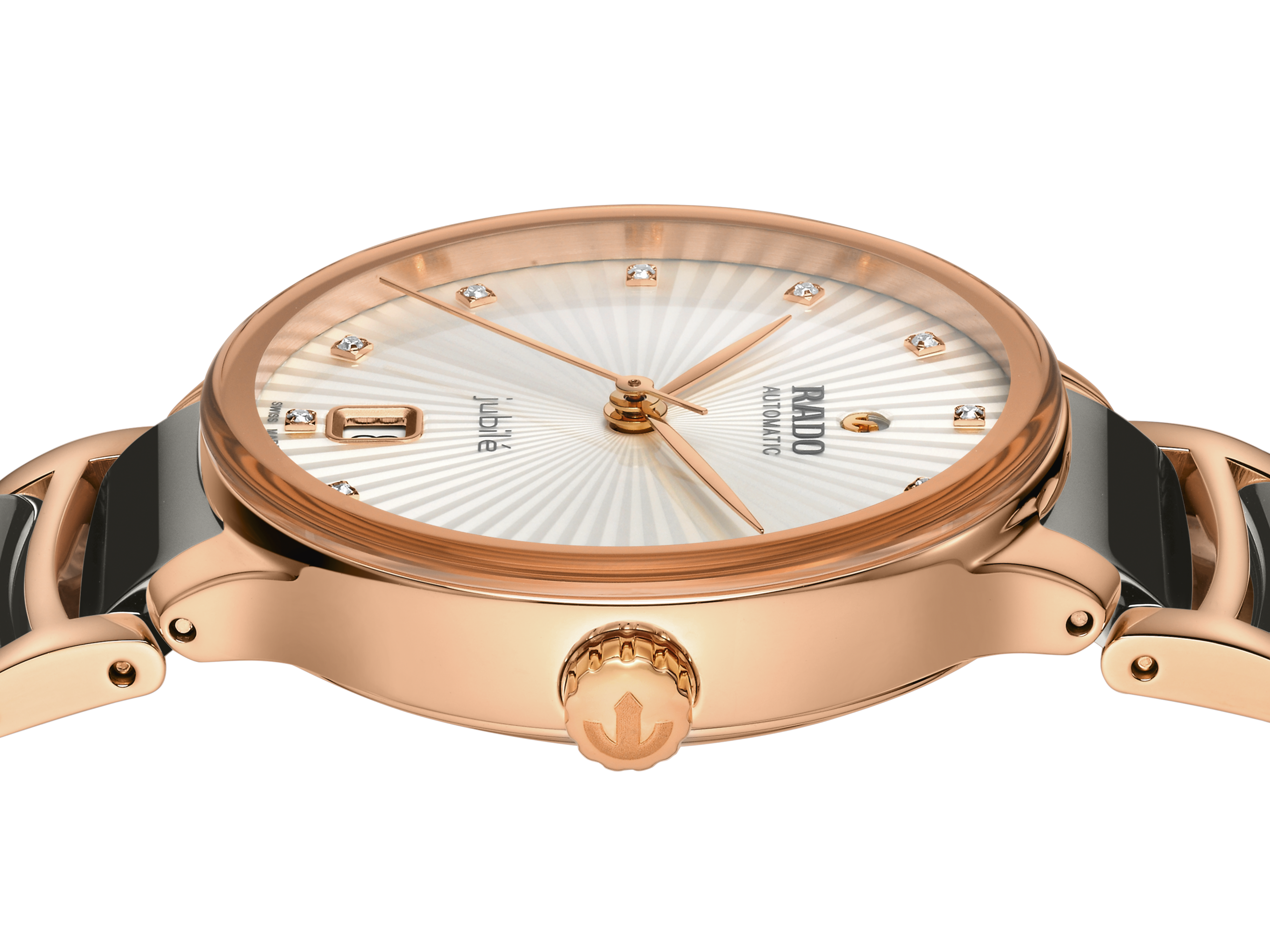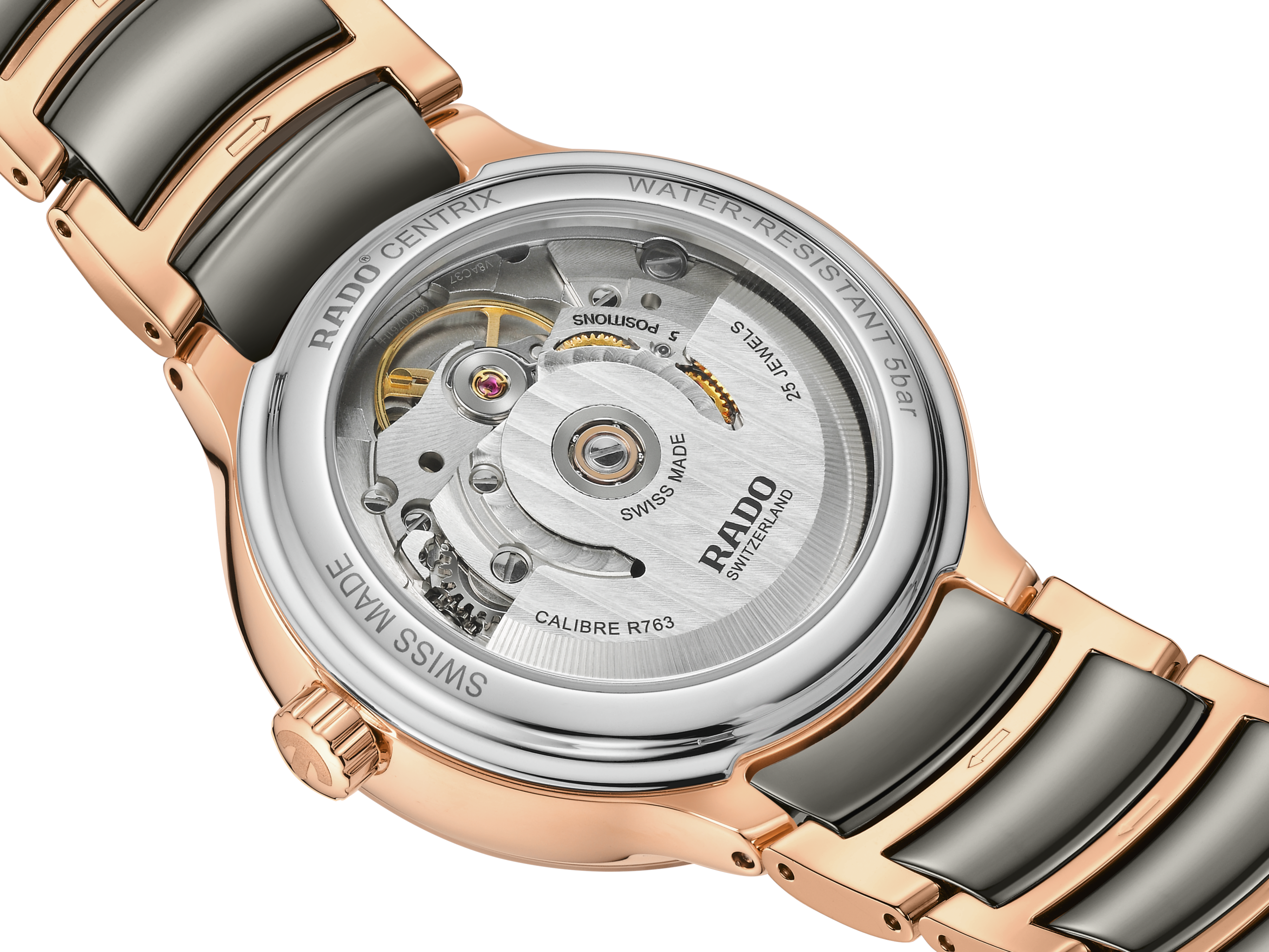 经典Centrix晶萃系列镶钻自动机械腕表不仅在技术上进行调整,亦在美学上予以重新设计。修改后的表款,拥有一个圆形的无边框蓝宝石水晶玻璃表镜,以及一个与弧形水晶边缘浑然天成的弧形表壳。调整后的表耳和搭配等离子高科技陶瓷中央链节的抛光玫瑰金PVD涂层精钢表链,令这款经典时计的整体外观更臻完美。表盘通过压印成型并以漆面填充,为棕色刻面表盘创造出华丽的3D效果。由于搭载Nivachron™防磁游丝,使这款R763型三针机芯在3至5个位置上远超标准测试要求,实现更高的可靠性和精确度。这款腕表防水深度可达50米,并提供80小时的动力储存。