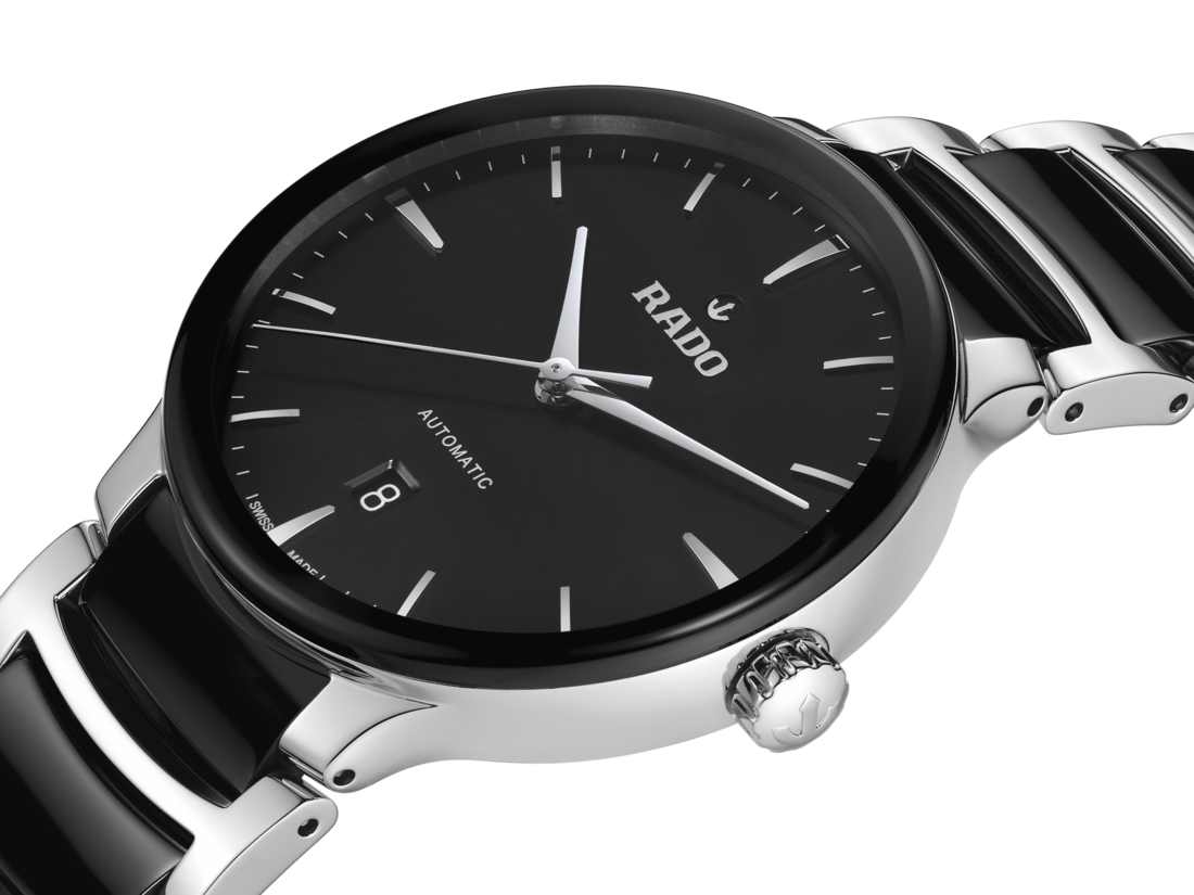 经典Centrix晶萃系列自动机械腕表不仅在技术上进行调整,亦在美学上予以重新设计。修改后的表款,拥有一个圆形的无边框蓝宝石水晶玻璃表镜,以及一个与弧形水晶边缘浑然天成的弧形表壳。调整后的表耳和搭配黑色高科技陶瓷中央链节的抛光精钢表链,令这款经典时计的整体外观更臻完美。黑色的太阳纹表盘搭配镀铑时标,与铑色指针相得益彰。由于搭载Nivachron™防磁游丝,使这款R763型三针机芯在3至5个位置上远超标准测试要求,实现更高的可靠性和精确度。这款腕表防水深度可达50米,并提供80小时的动力储存。