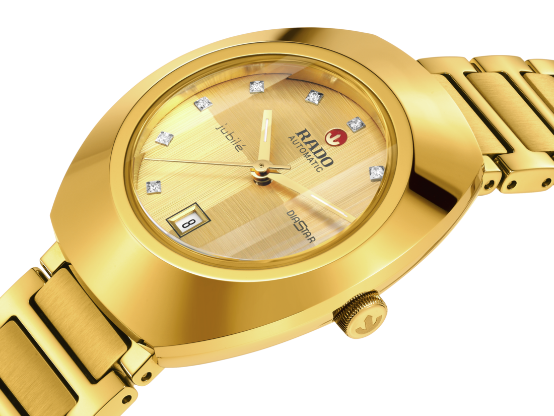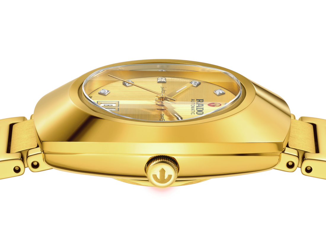 瑞士制表工艺与开创性创意的经典体现。Rado瑞士雷达表DiaStar钻星系列腕表专为敢于探索非凡的品味人士而量身打造。30毫米表壳,镶嵌抛光黄金色Ceramos™碳化金属陶瓷表圈,与抛光黄金色PVD涂层精钢中层表壳和谐相融,防水性能高达10巴(100米)。经双向拉丝的柠檬黄表盘,镶嵌11颗顶级威塞尔顿足瓣切割钻石时标,优雅擒获每一缕流光。表盘中央,经典金色可摆动锚型标志傲然夺目,6点钟方位精准布局的日期窗口更添雅韵。金色指针覆有白色Super-LumiNova®涂层,确保任何光线条件下的清晰读时。此精致表盘由垂直内侧刻面防反光涂层蓝宝石水晶表镜守护。腕表搭载R586自动机械机芯,经五个方位精调,配备Nivachron™游丝,提供卓越精准度与48小时动力储存。这款经典腕表的整体造型以黄金色PVD涂层精钢表链完美收尾,结合抛光链节与拉丝中部链节,搭配抛光黄金色PVD涂层精钢三折式表扣,展现精致细腻的设计美感。