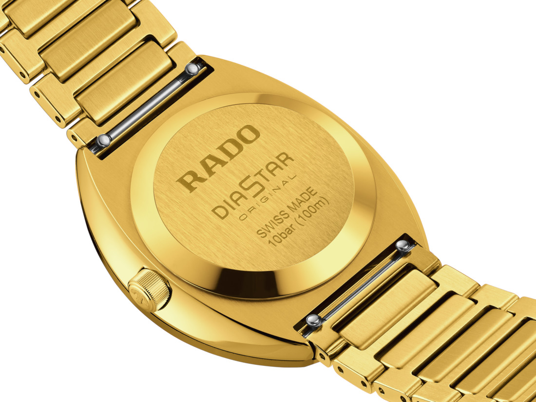 这款典雅而璀璨的DiaStar Original钻星创始型系列腕表直径38毫米,防水深度可达100米。它传承Rado瑞士雷达表的经典造型美学,又巧妙融入现代元素,专为独具慧眼的腕表爱好者匠心打造。腕表搭载Ceramos™金属陶瓷表圈,质地轻盈且坚固耐磨。表盘覆以蓝宝石玻璃,透光出色,更添防刮耐划的周全守护。表盘采用黄金色阳光饰纹,点缀喷砂星形图案,镶嵌11颗宝石更添奢华质感,六点钟位置还设有星期-日历显示。表链、中部链节以及三折式表扣均采用PVD镀层精钢材质打造,融入了抛光与拉丝金色工艺。不仅是惊艳的造型。Rado瑞士雷达表R764自动机械机芯拥有最高长达80小时动力储存,配备Nivachron™防磁游丝,并经过远超标准要求的五个方位测试和调整实现更高精度。