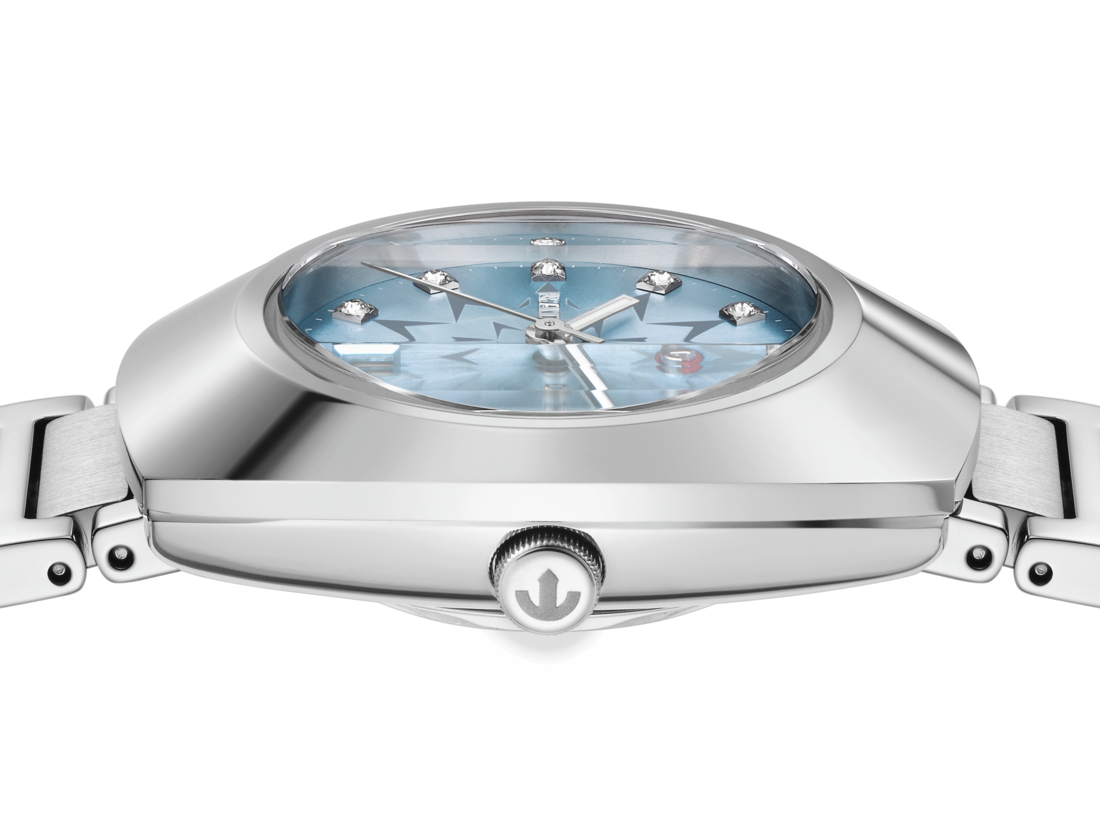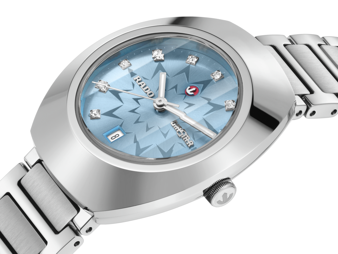这款全新DiaStar Original钻星创始型系列腕表采用重新设计的小巧尺寸,凝聚Rado瑞士雷达表历史中的诸多标志性特征。30毫米直径较其硬金属版本的27毫米更为宽大,却更精妙地诠释了现代制表美学。这款全新腕表的Rado瑞士雷达表可摆动锚型标志以红色背景为衬托,呼应了1962年问世的DiaStar钻星1号,同时设计着眼未来,随时准备迎接前方的挑战。Ceramos™金属陶瓷表圈兼具轻盈质感与防刮耐磨特性,表盘覆盖蓝宝石玻璃镜面更添防护保障。表盘采用蓝色阳光饰纹,点缀喷砂星形图案,镶嵌11颗宝石,六点钟位置还设有星期-日历显示。腕表防水性能达10巴(100米)。表链、中部链节以及三折式表扣融合抛光和拉丝精钢材质,并配备表带快速更换(EasyClip)系统。最高长达48小时动力储存、Nivachron™防磁游丝以及五个方位测试和调整,共同成就了这款真正的腕间臻品。