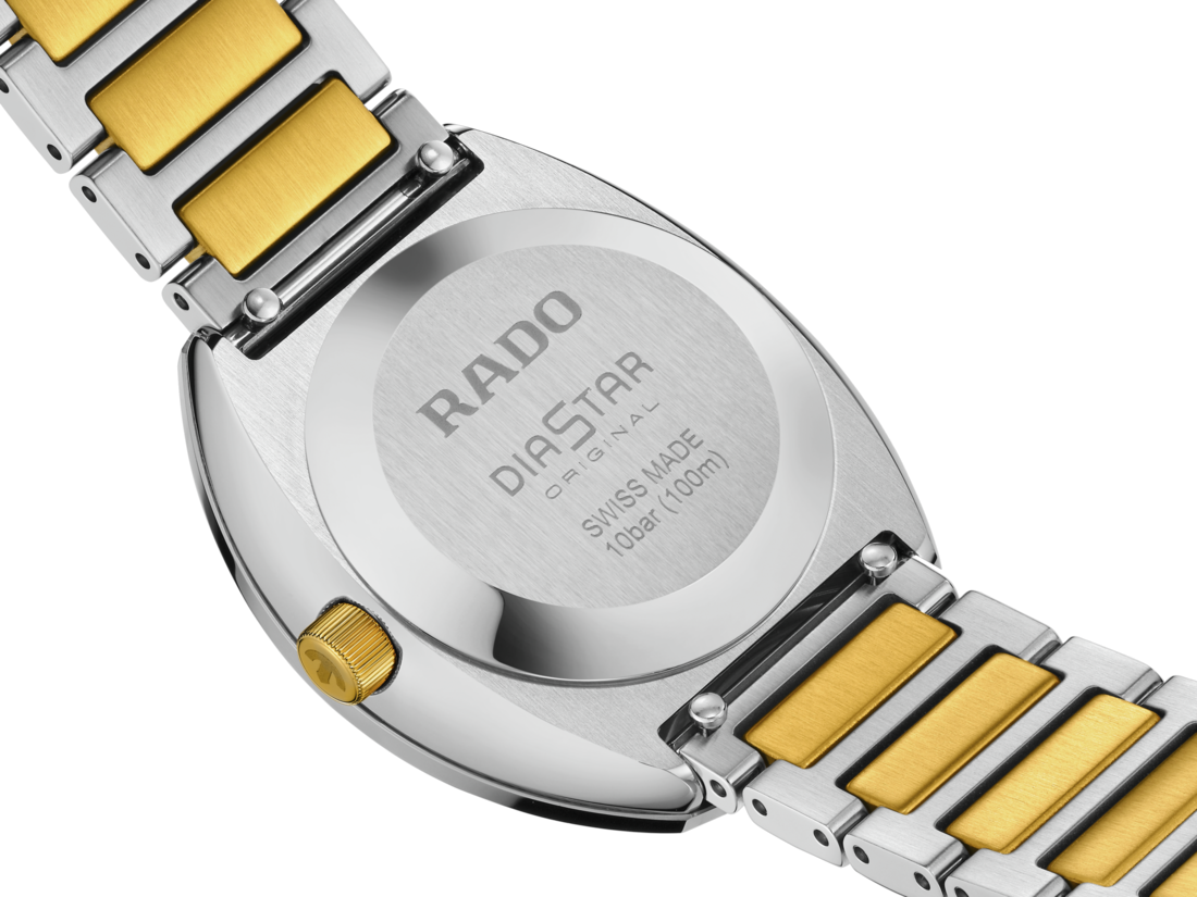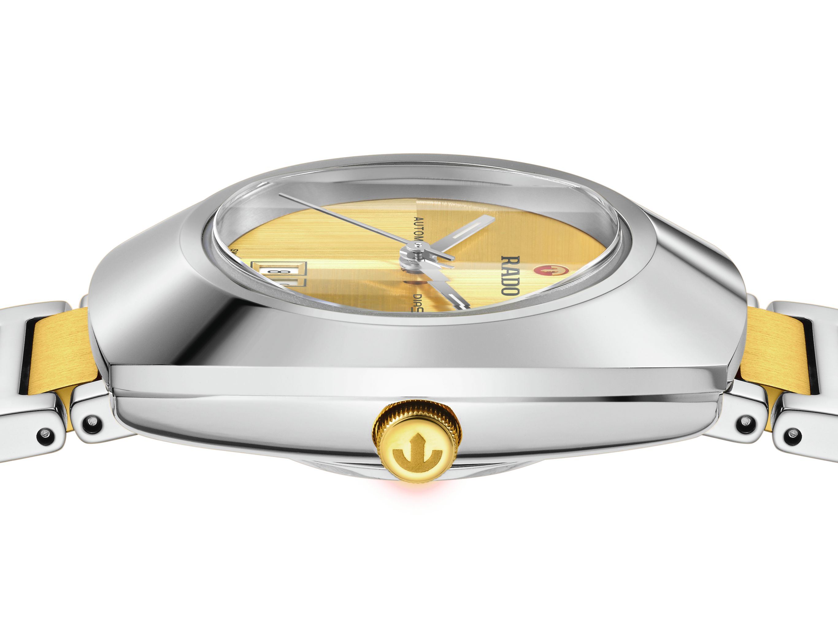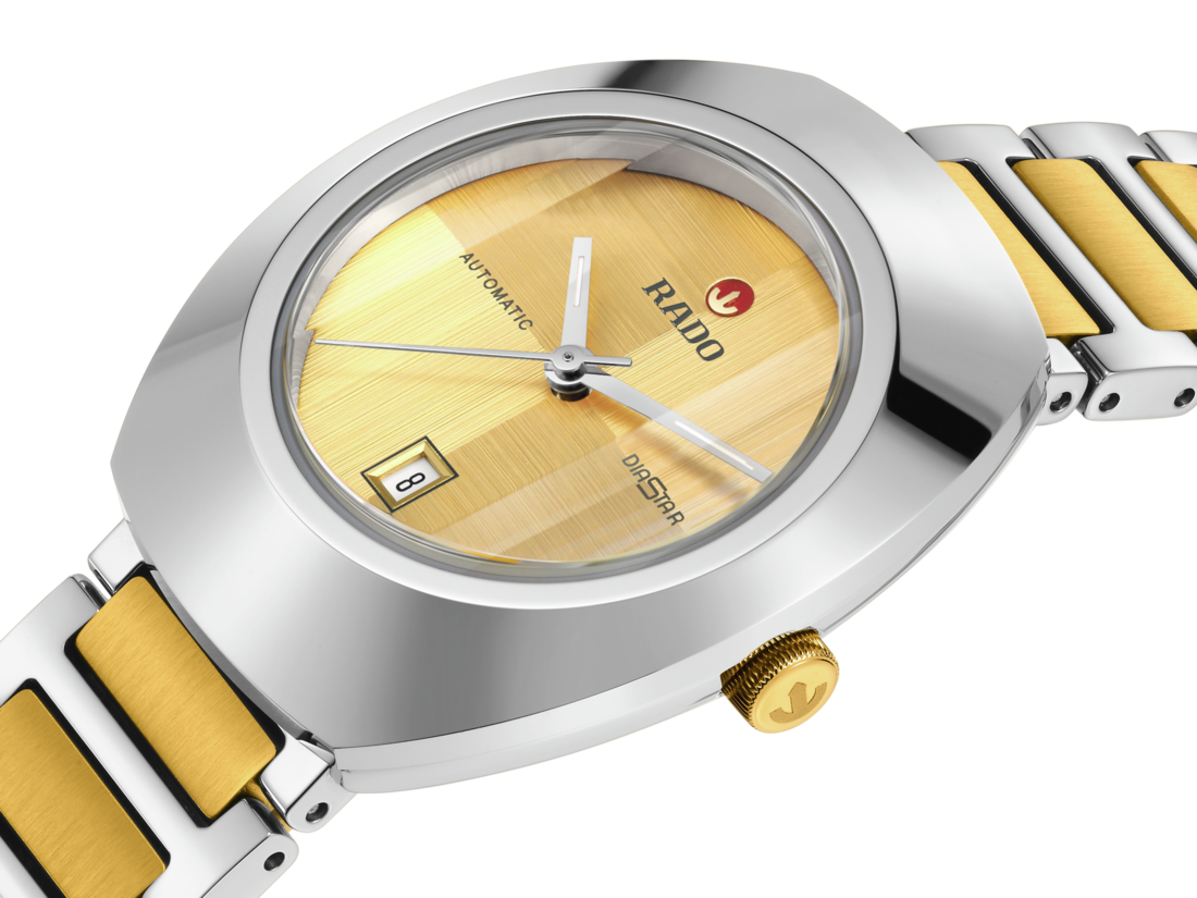 瑞士制表工艺与开创性创意的经典体现。Rado瑞士雷达表DiaStar钻星系列腕表专为敢于探索非凡的品味人士而量身打造。30毫米表壳,镶嵌抛光铂金色Ceramos™碳化金属陶瓷表圈,与抛光精钢中层表壳和谐相融,防水性能高达10巴(100米)。双向拉丝黄色表盘在光影间展现优雅魅力,衬托出经典的金色可摆动锚型标志,并于6点钟位置精准嵌入日期窗。铑色指针覆有白色Super-LumiNova®涂层,确保任何光线条件下的清晰读时。此精致表盘由垂直内侧刻面防反光涂层蓝宝石水晶表镜守护。腕表搭载R586自动机械机芯,经五个方位精调,配备Nivachron™游丝,提供卓越精准度与48小时动力储存。这款经典腕表的整体造型以精钢表链完美收尾,结合抛光链节与拉丝黄金色PVD涂层中部链节,搭配抛光精钢三折式表扣,展现精致细腻的设计美感。