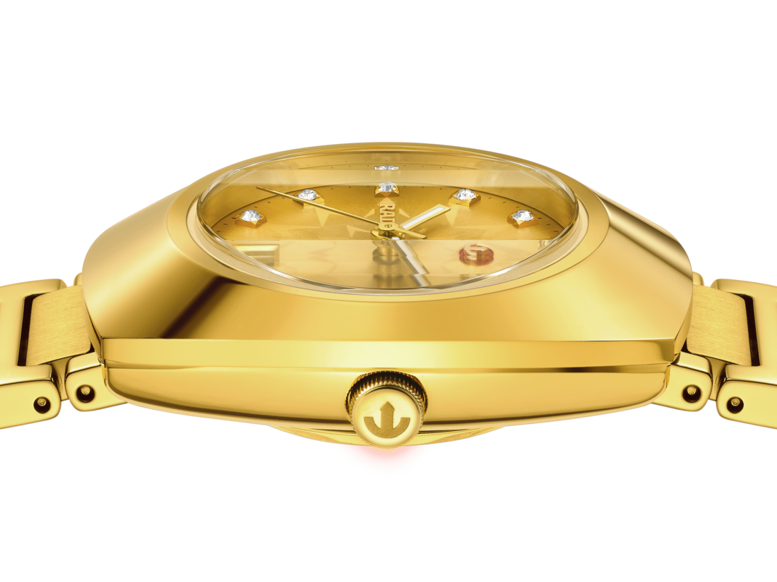 这款DiaStar Original钻星创始型系列腕表以全新的小巧尺寸登场,为经典系列锦上添花。其30毫米直径虽大于硬金属材质的27毫米版本,但精准契合当代腕表爱好者独到的审美取向。腕表搭配Ceramos™金属陶瓷表圈,质地轻盈且坚固耐磨,表盘覆以蓝宝石玻璃,透光出色更添防刮耐划的周全守护。表盘采用黄金色阳光饰纹,点缀喷砂星形图案,镶嵌11颗宝石,并且在六点钟位置设置了日历窗口。表链、中部链节以及三折式表扣均采用PVD镀层精钢材质打造,融入了抛光与拉丝金色工艺。最高长达48小时动力储存、Nivachron™防磁游丝以及五个方位测试和调整,共同成就了这款真正的腕间臻品。