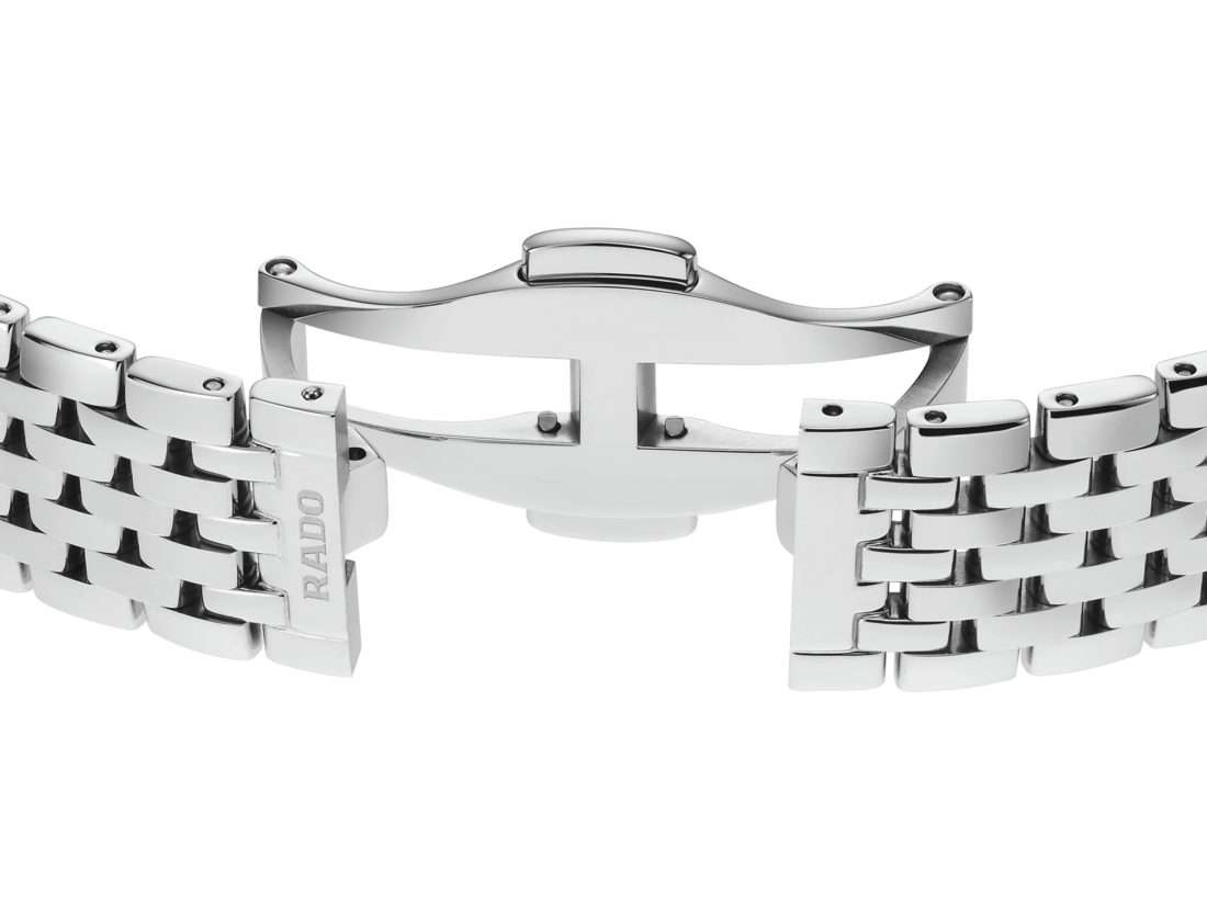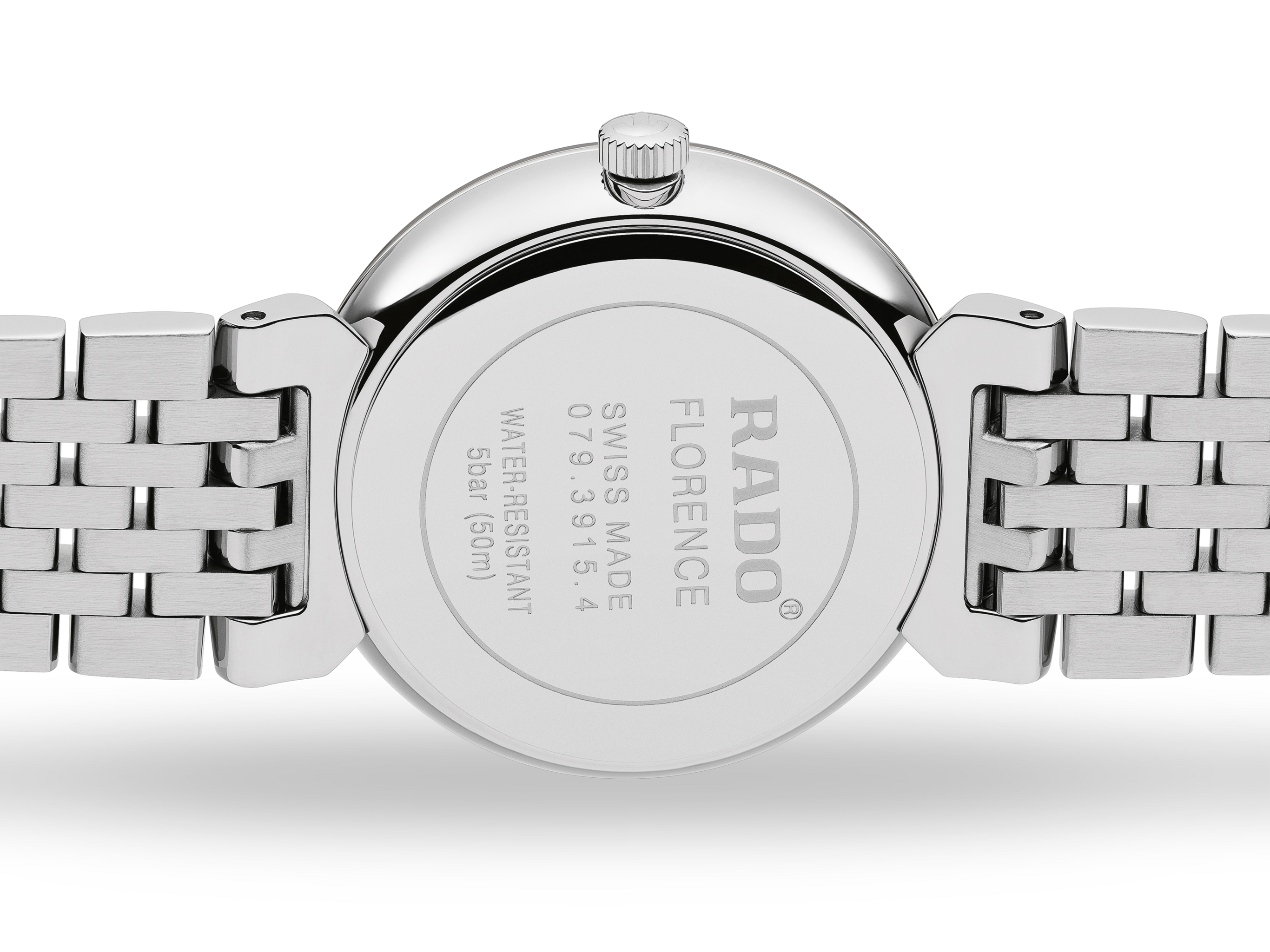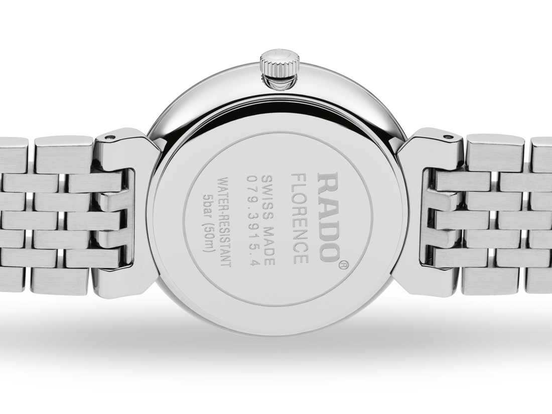 Rado瑞士雷达表Rado瑞士雷达表Florence佛罗伦萨系列充满和谐感的设计构思,令人联想起腕表命名城市的标志性典雅圆顶和钟塔。凭借高品质石英机芯、创新Rado瑞士雷达表金属涂层蓝宝石玻璃表镜和钻石的永恒魅力,这是一款经得起时间考验的经典时计。镀铑指针优雅滑行于4颗双翻钻的上方,四颗钻石分别位于3点、6点、9点和12点钟位置。全新Rado瑞士雷达表Florence Classic佛罗伦萨经典系列,携著名的Jubilé标志强势回归,向世人展示着其闪亮存在。