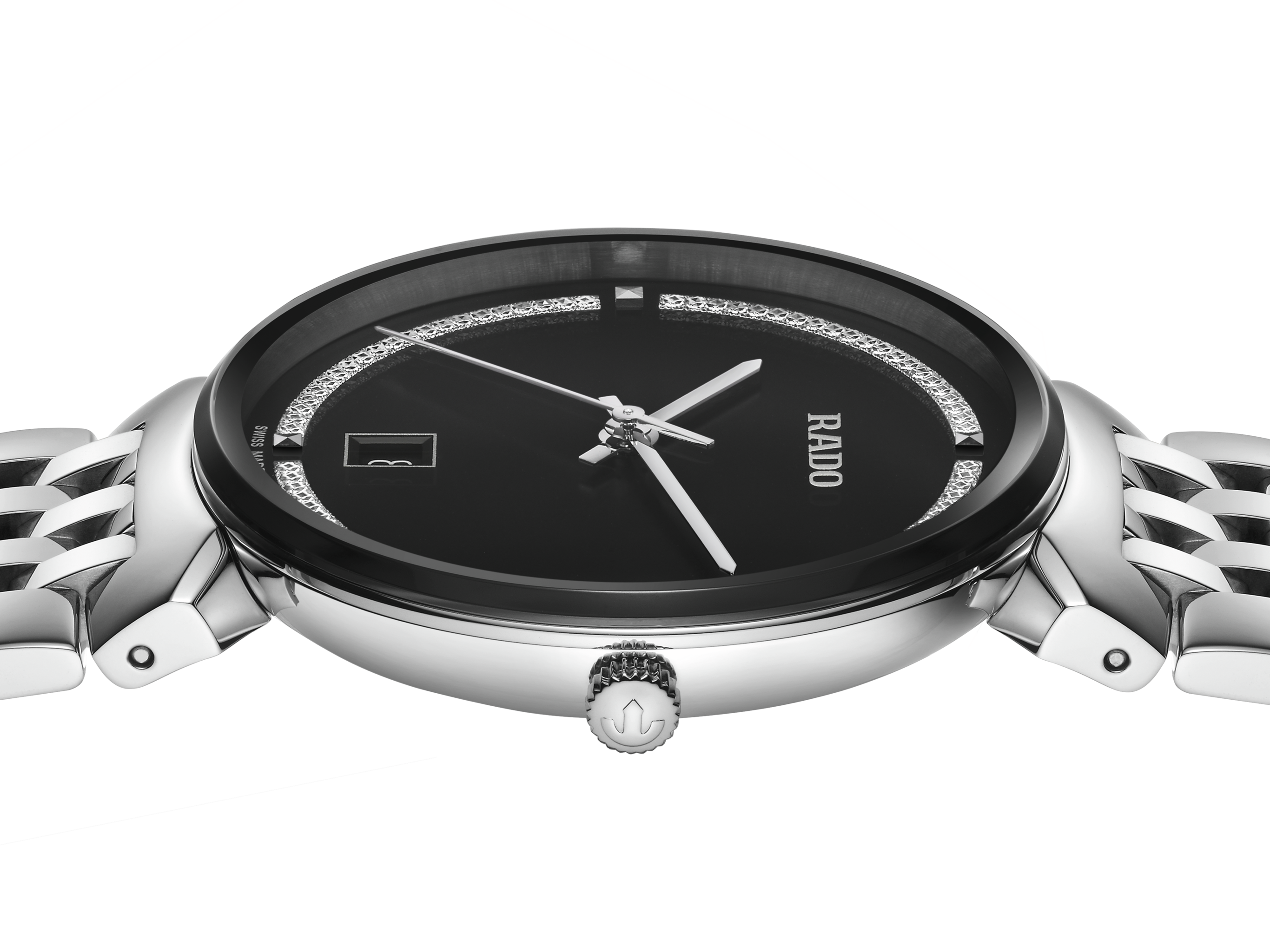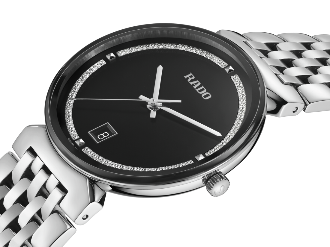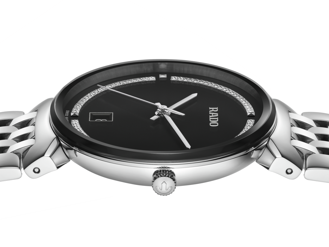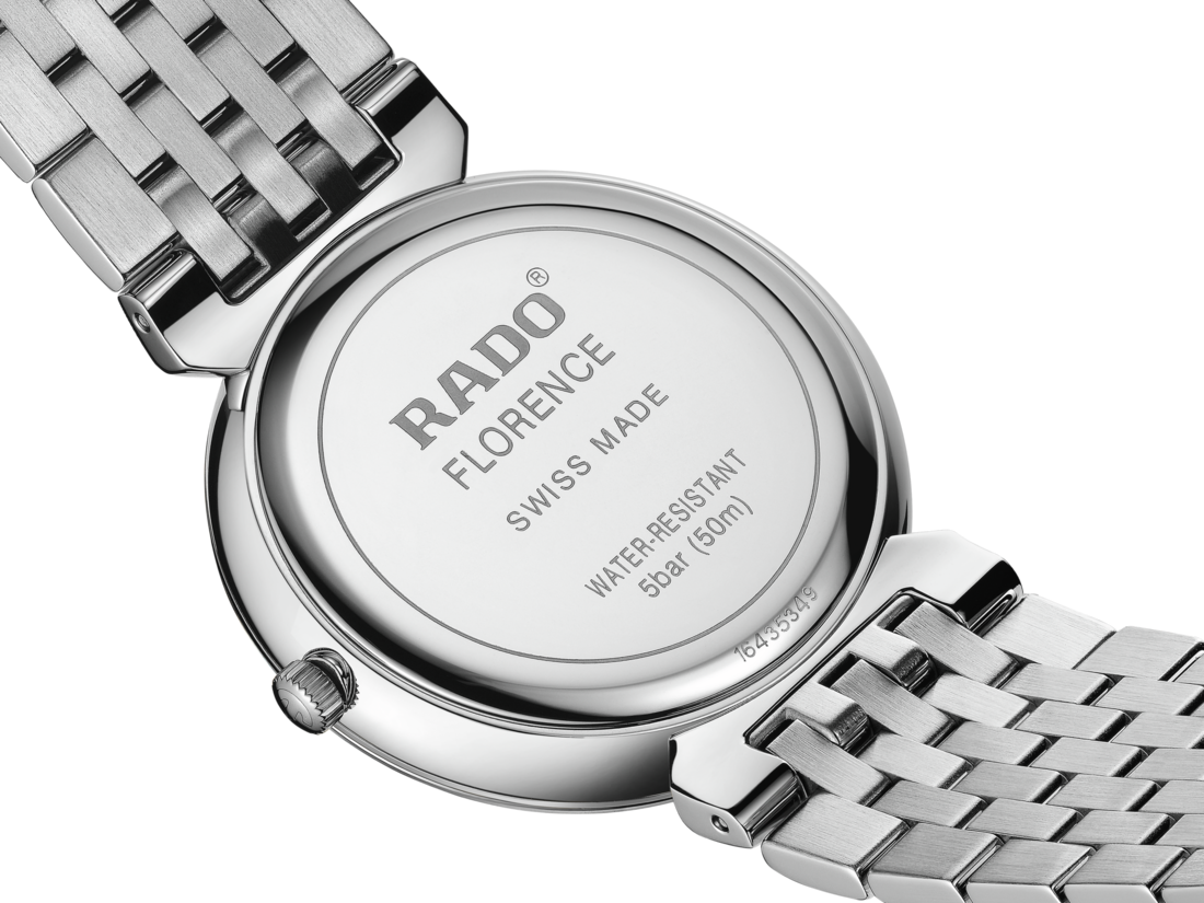 Rado瑞士雷达表Florence佛罗伦萨系列的和谐设计,让人不禁联想起这座城市里优雅的圆顶和塔楼,而该系列的名称正是来源于此。搭载可靠的三针R073型石英机芯,确保更高的走时精准度和抗震性。这款38毫米直径的腕表采用了无边框弧形斜面蓝宝石玻璃表镜。表壳、表冠、表圈和底盖都采用了抛光精钢材质。表链同样由抛光精钢制成,为这款经典时计的整体外观锦上添花。黑色表盘搭配闪亮的铑色装饰,并饰有银色“Rado”标志,与铑色指针相呼应。腕表防水性能可达50米。此外,另有小尺寸表款可供选择,可以组成理想的情侣腕表。