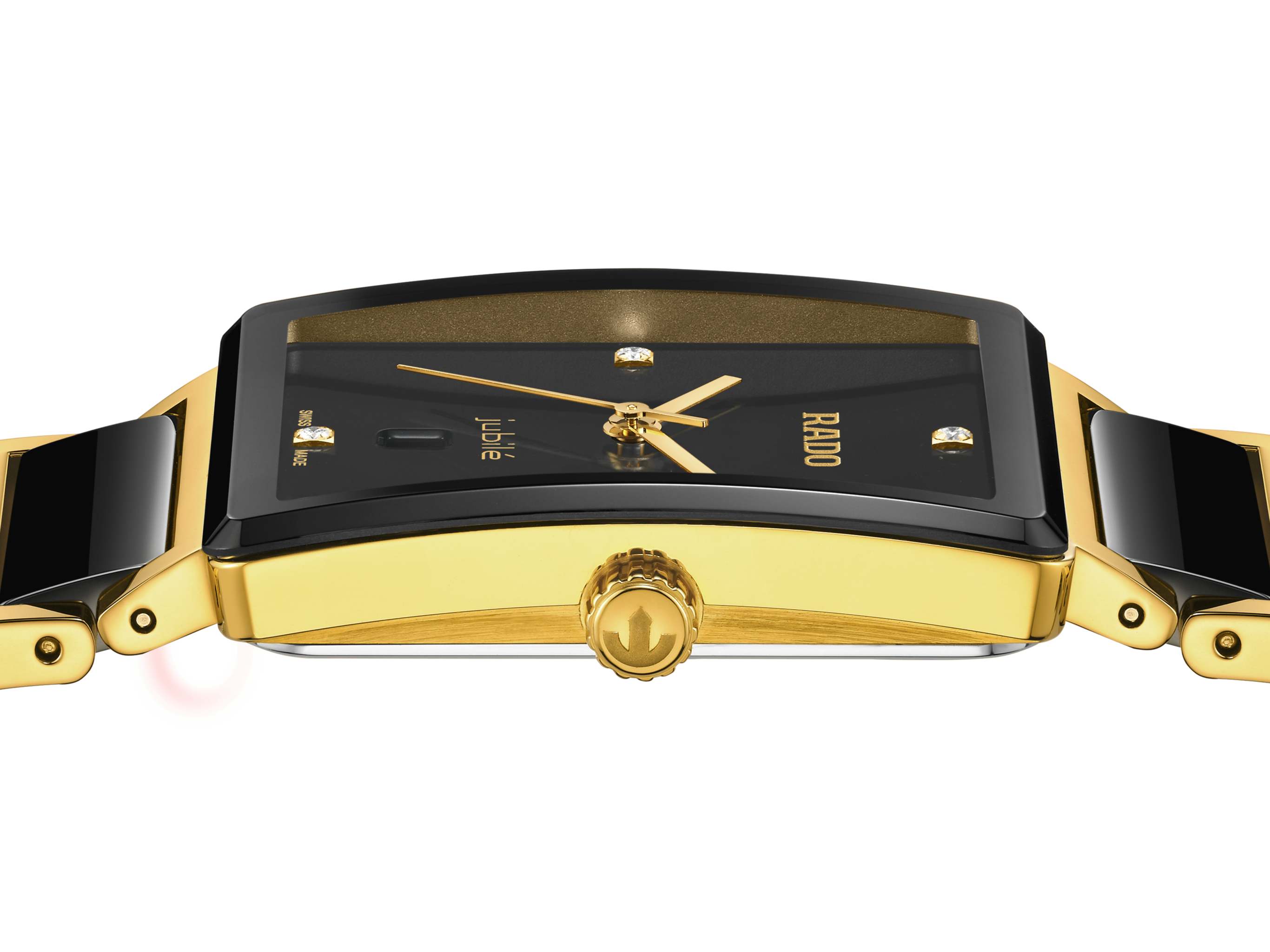 您对生活美学的追求在每个细节中流露。您热爱舒适性、精致设计与暖金色调的奢华感。您对Rado瑞士雷达表Integral精密陶瓷系列的选择说明一切。 标志性方形精钢表壳覆以抛光暖金色表层,搭载无边框斜面蓝宝石玻璃表镜,经防眩目处理与黑色金属镀层修饰。暖金色指针滑过漆面黑色表盘与标志性的4颗钻石。内置机芯确保卓越走时性能:Rado R218机芯镶嵌8颗宝石,精准度符合瑞士认证天文台表标准。此Rado瑞士雷达表标志性作品的典雅设计,将微锥形表链上的高科技陶瓷中间链节舒适感,并与蓝宝石玻璃表镜相融。锦上添花:表镜弧度与腕部柔美曲线精准契合,这无疑彰显了您非凡品味与对优雅的热爱。
