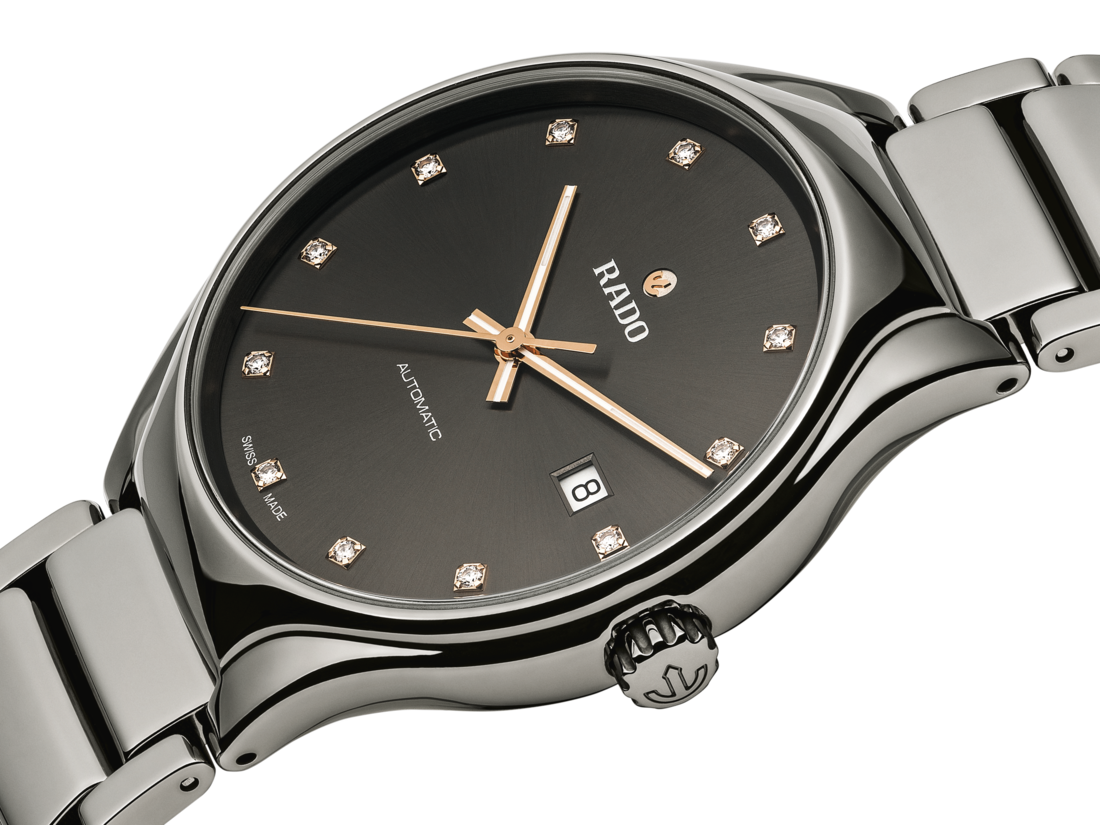 Rado瑞士雷达表True真系列腕表采用抛光处理高科技陶瓷,全新升级的设计现代简约,出色保留了Rado瑞士雷达表别具一格的特色,风格卓著,并搭载装饰精美的瑞士自动机械计时机芯,耀眼钻石更为腕表增添无尽魅力。这款腕表不仅拥有持久的迷人光芒,且舒适轻盈。这正是Rado瑞士雷达表True真系列的至臻魅力。